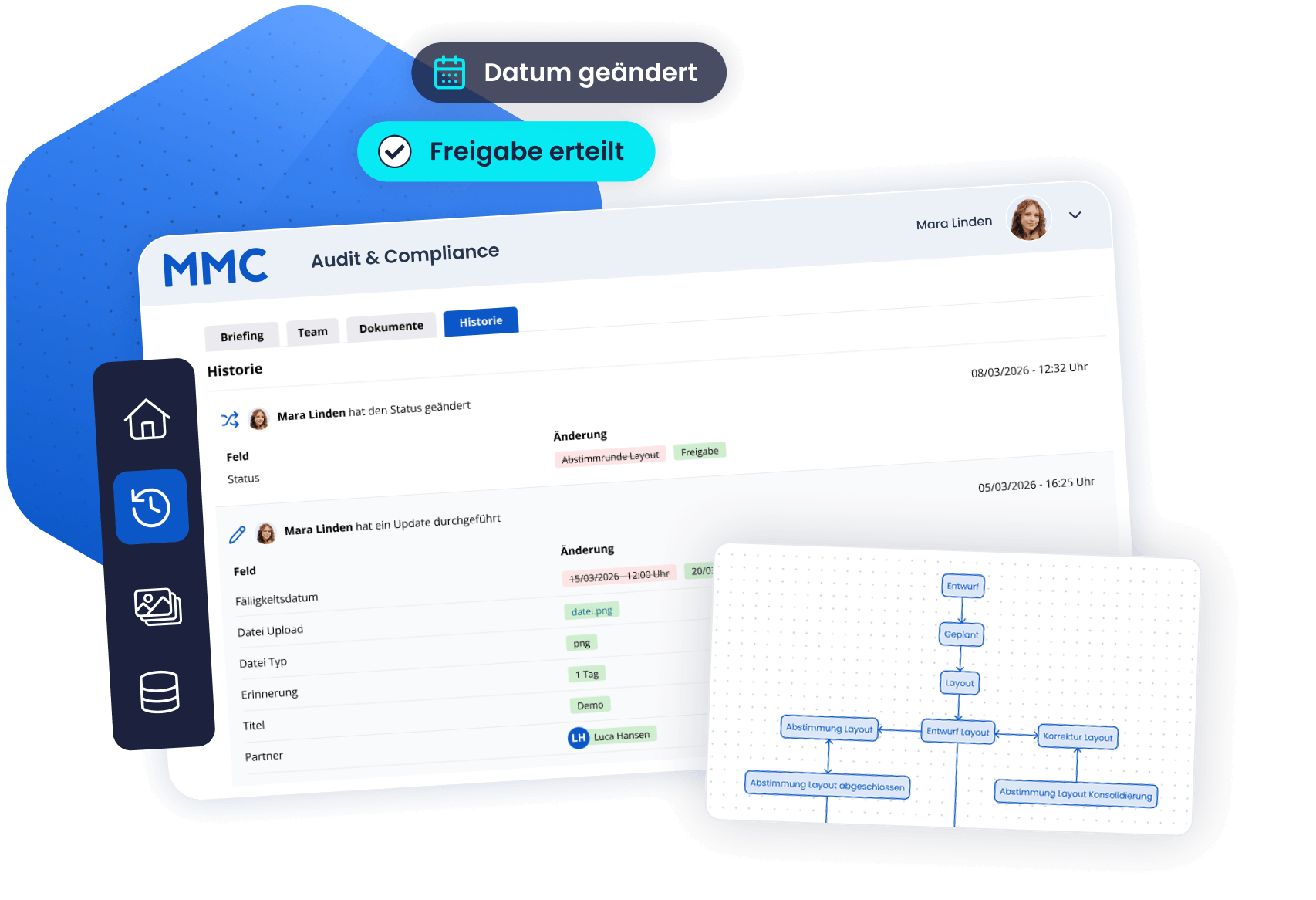 Sie definieren verbindliche Freigabeprozesse, das System setzt sie durch. Wenn Geschäftsführung oder Wirtschaftsprüfer Nachweise anfordern, stehen alle Audit-Trails sofort bereit.