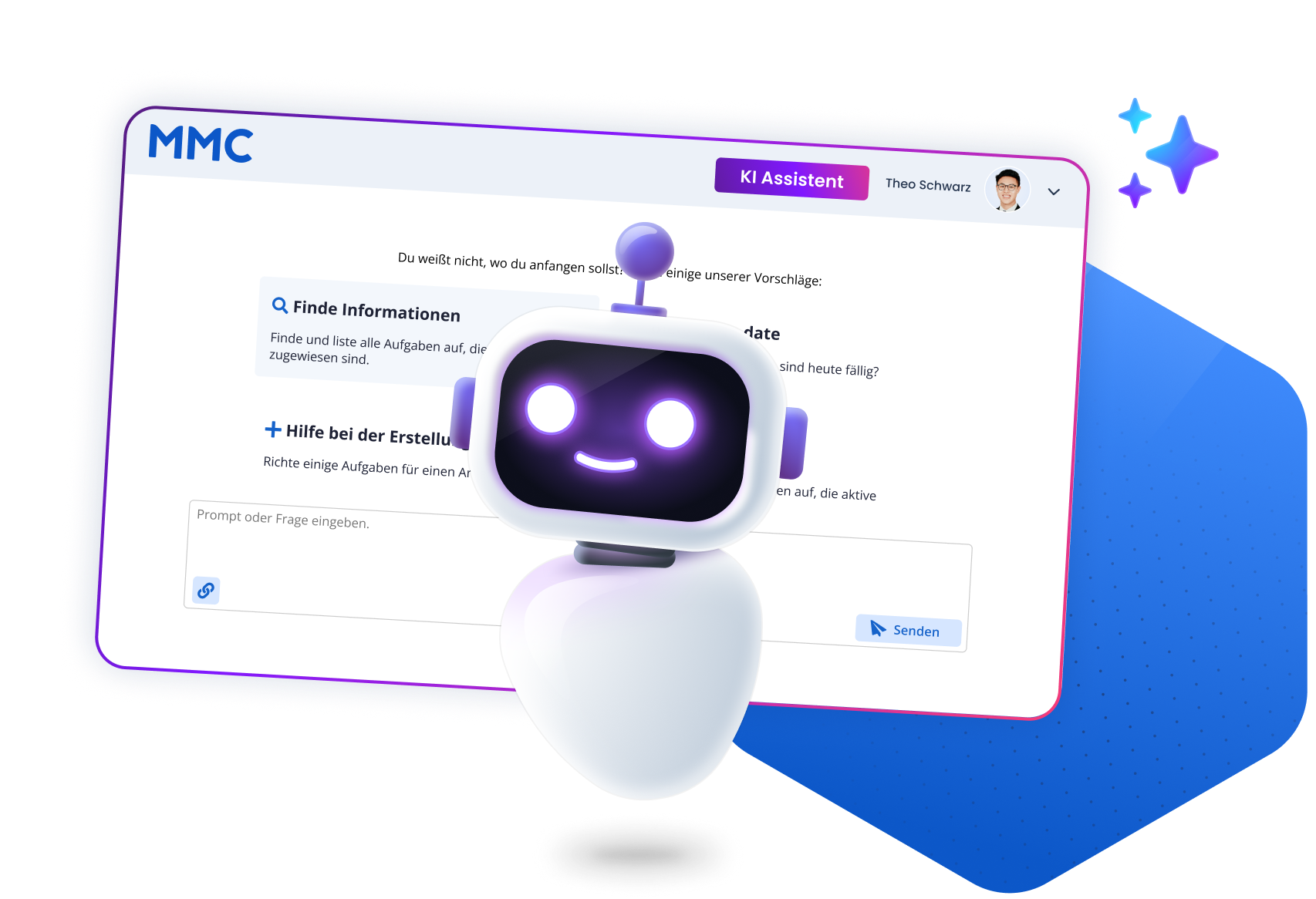 Künstliche Intelligenz im Management Center arbeitet mit Ihrem Kontext, nicht gegen ihn. Sie formuliert Briefings nach Ihren Markenrichtlinien, prüft Entwürfe auf Corporate Design-Vorgaben und fasst Feedback aus Abstimmrunden zusammen.
